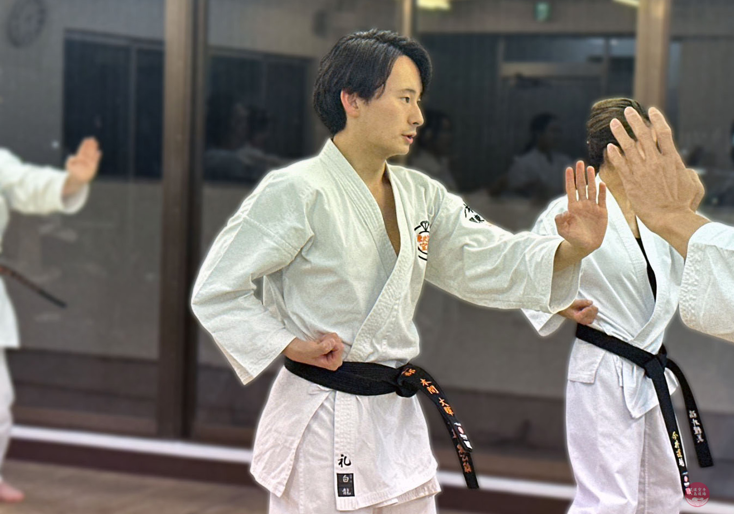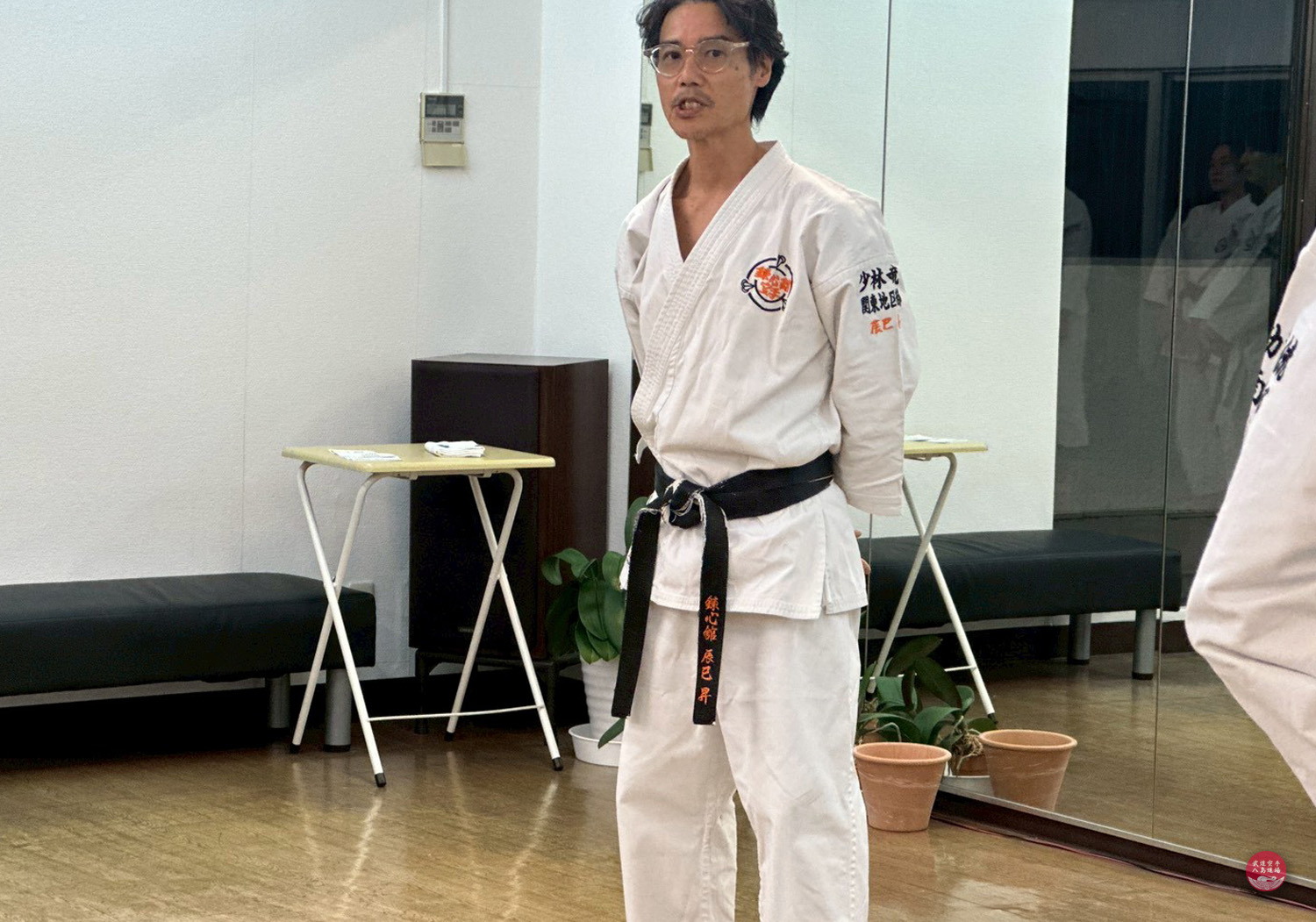 大船駅前教室で指導を行う、武道空手八島道場の指導員。黒帯を締めた道着姿